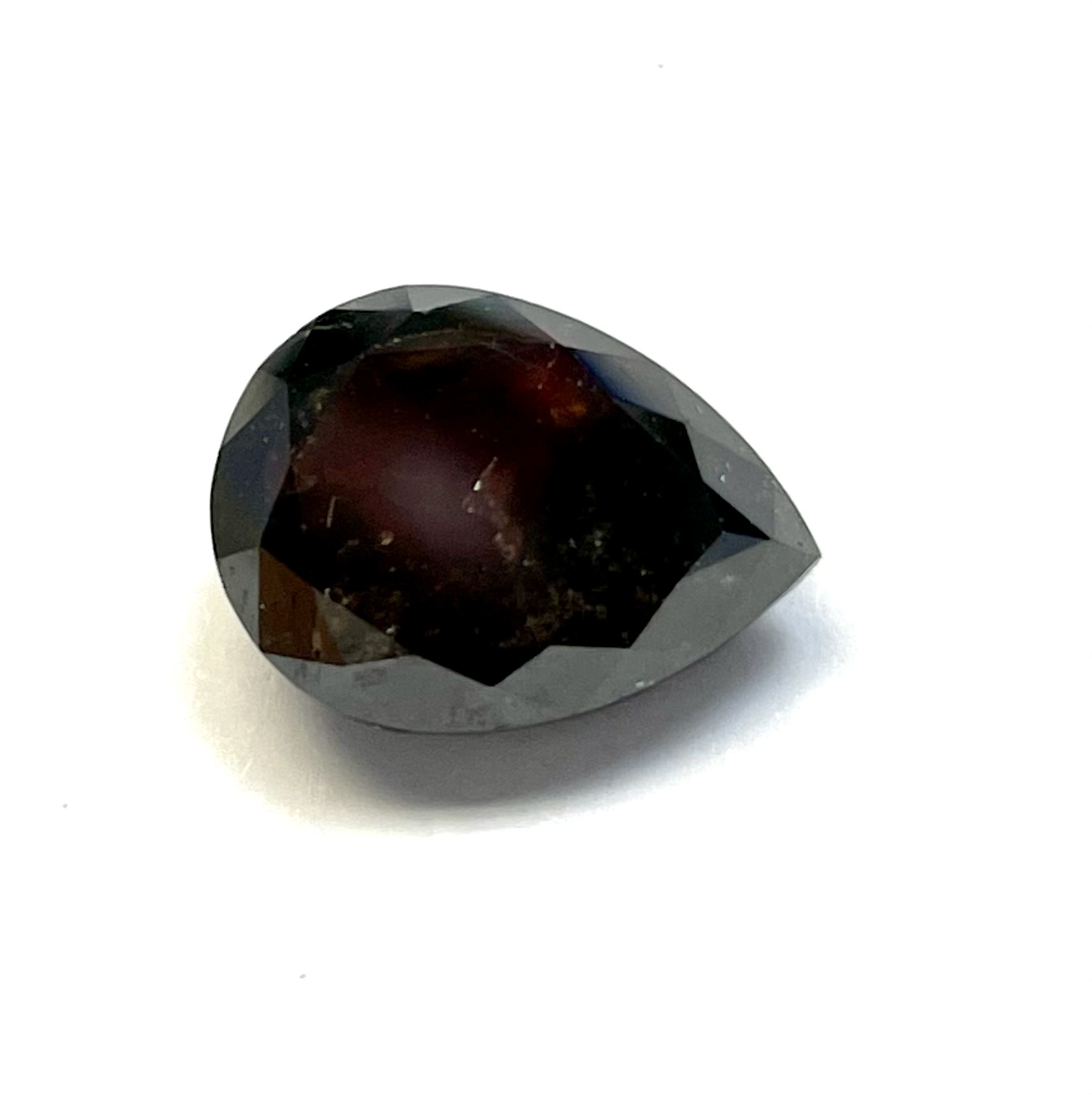 Double Cut Salt & Pepper Brilliant Cut Pear with Red Inclusion 4.91ct